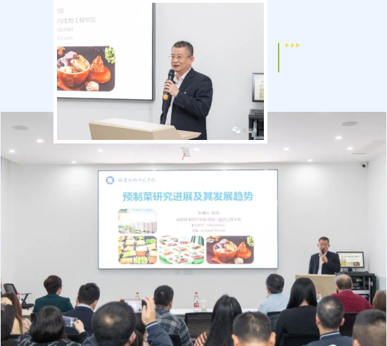 本次活动由福清市市场监督管理局(知识产权局)、福清融侨经济技术开发区管委会、福建海丝创谷创新科技成果转化有限公司、福清产业技术研究院主办,这也是福建省首次举办以“两国双园”知识产权创造、运用、保护为主题的论坛,活动以食品产业为主题,邀请了厦门大学化学化工学院教授李耀群、集美大学海洋食品与生物工程学院教授翁武银、及我校食品与生物工程学院院长、研发中心叶瑞洪教授担任报告嘉宾。叶瑞洪教授分享了预制菜研究进展及其发展趋势,并深入介绍了中印尼“两国双园”中方园区——福州新区福清功能区在预制菜产业上的发展和规划。