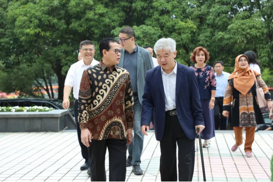 座谈会上,赖海榕书记简要介绍了学校基本办学情况,近年来围绕中印尼“两国双园”项目与印尼各界的交流互动与合作情况,以及招收印尼留学生和印尼语专业开设情况。他表示,希望与茂物农业大学进一步推进2021年签署的合作备忘录各项事项,开展教学科研和师资队伍、人才培养等方面合作,并共同参与推动围绕中印尼“两国双园”项目开展的政企校三方合作;希望与派拉蒙集团等印尼企业加强联系对接与合作交流,共促发展。