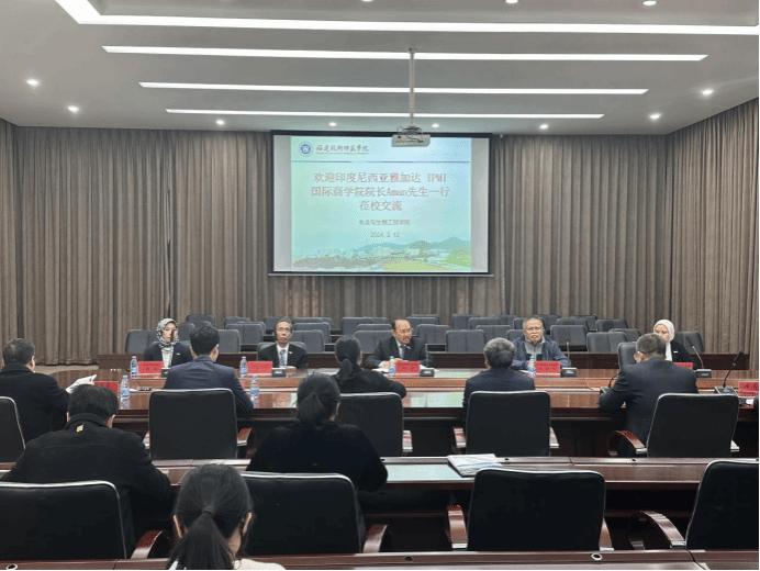 为促进印尼与我校间学术与人才培养计划的交流发展,2024年3月12日下午,国际食品科技联盟主席、印尼IPMI国际商学院校长阿曼教授(Aman),副校长沙姆斯教授(Syamsul Maaril),食品安全领域专家德迪教授(Dedi Fardiaz)等一行5人来校访问,并于图书馆报告厅开展教师座谈会。食品与生物工程学院院长叶瑞洪、副院长项雷文(研发中心主任)、特聘教授饶平凡(研发中心委员会主任)、侨兴经济与管理学院副院长赵喜东、海外教育学院副院长肖晶、国际处刘丽蓉、外国语学院、侨兴经济管理学院及研发中心老师参与本次会议。