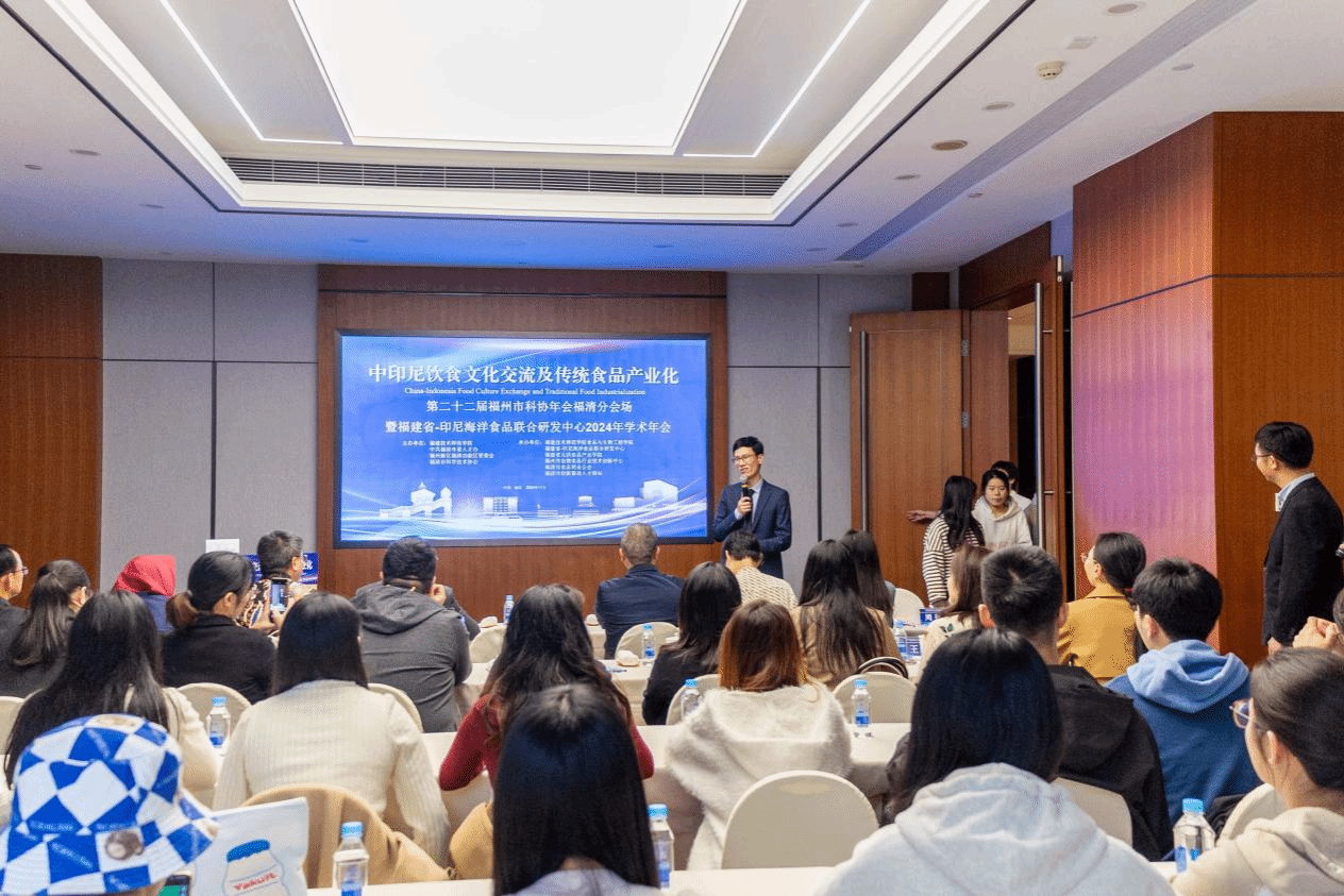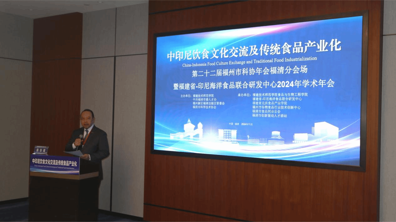 2024年11月23日,由福建技术师范学院、中共福清市委人才办、福州新区福清功能区管委会、福清市科学技术协会主办,福建技术师范学院食品与生物工程学院、福建省-印尼海洋食品联合研发中心、福建省元洪食品产业学院、福州市谷物食品行业技术创新中心、福清市食品同业公会、福清市创新驱动人才驿站承办的第二十二届福州市科协年会福清分会场暨福建省-印尼海洋食品联合研发中心2024年学术年会在福清召开,与2024中印尼人文交流发展国际会议同期举行。来自中印尼两国高校、行业企业、社会组织等代表60余人参加本次会议。