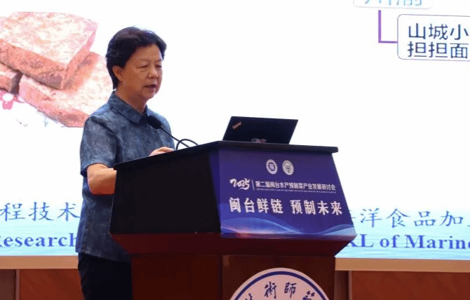 台湾海洋大学吴彰哲教授围绕功能性水产冷冻调理食品的开发展开深入探讨;金门大学赖盈璋教授分享了金门特色预制海鲜粥的研制创新成果;福建技术师范学院项雷文教授阐述了福建特色传统食品佛跳墙现代化改造的思路;胜田(福清)食品有限公司施捷董事长从企业视角出发,讲解预制菜产品开发方法论;福建坤兴海洋股份有限公司邓立青高级工程师探索了水产预制菜鱿鱼加工的破局路径。这些报告展现了水产预制菜领域在产品研发中的创新实践,充分体现了产学研协同推进产品创新的蓬勃活力与丰硕成果。