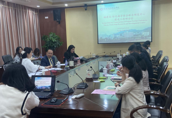 阿曼教授简要介绍了他的个人履历和学术经历,以及IPMI国际商学院和国际食品科技联盟的基本情况,并对本次受邀到访我校、受聘为客座教授表示感谢。随后,举行了福建省—印尼海洋食品联合研发中心建设研讨会。作为中心学术委员会副主任,阿曼校长认真参与工作研讨,在中心建设、两校合作、校地企共建、教师进修访学、学生人才培养等方面提出了诸多富有见地的意见和建议。